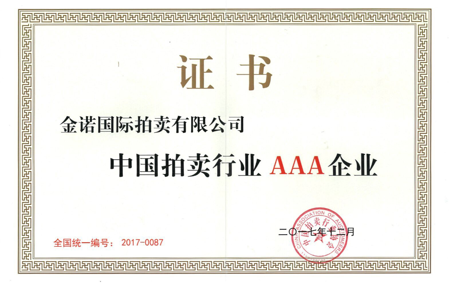 中國拍賣AAA級企業