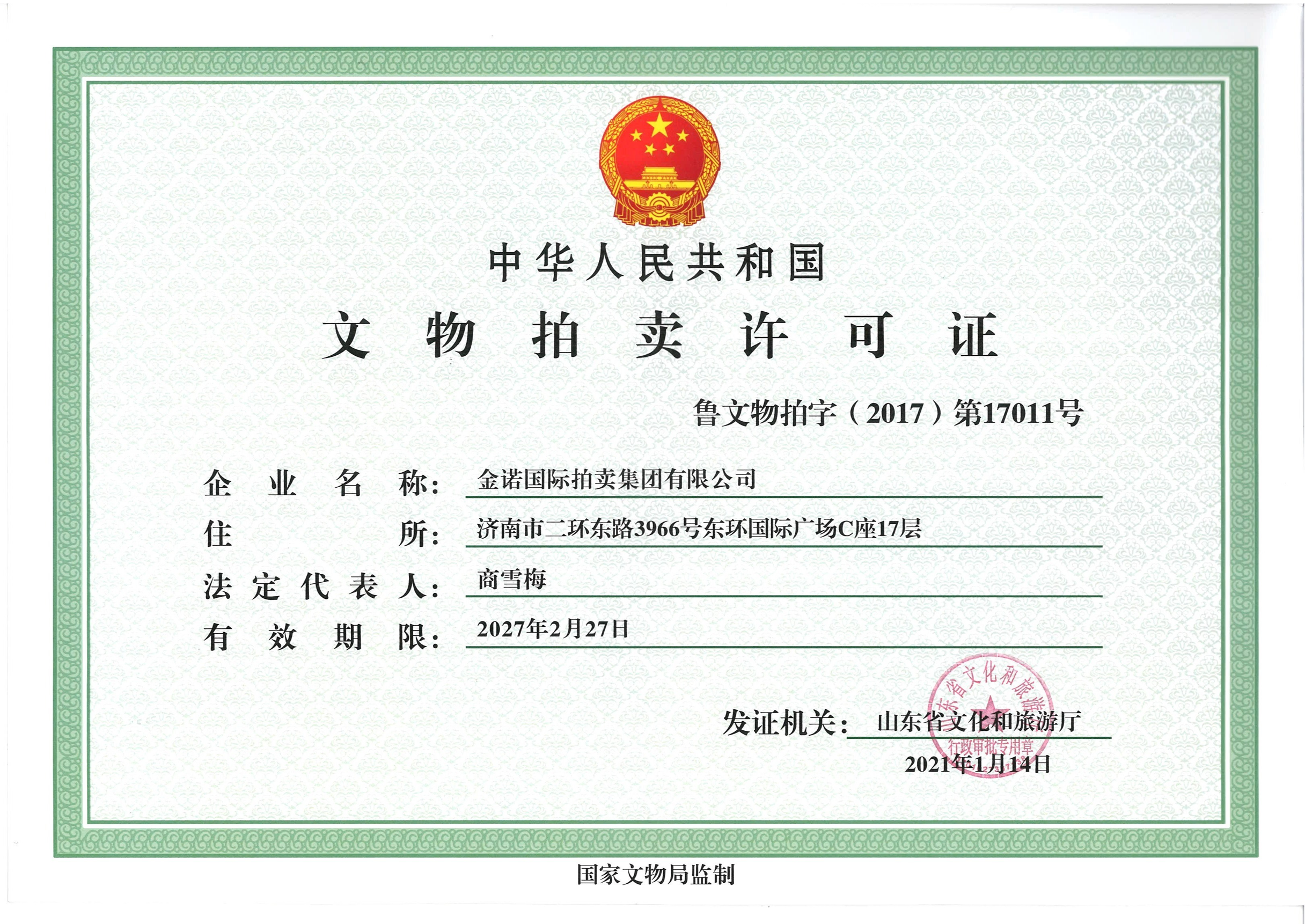 文物拍賣許可證
