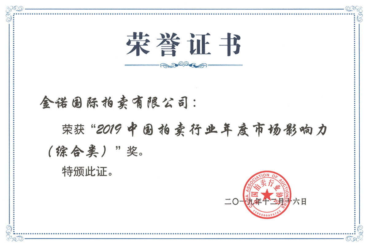 中國拍賣行業年度市場影響力(綜合類)獎