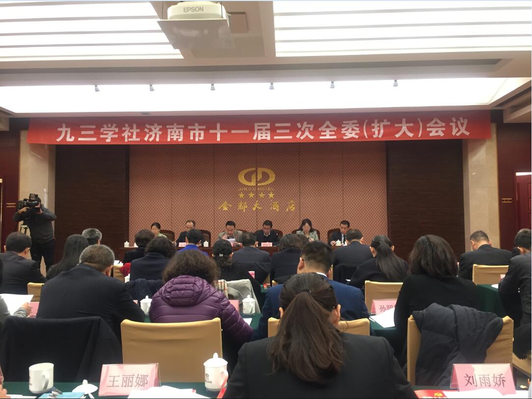 2017年12月28日上午,九三學社濟南市十一屆三次全委(擴大)會議在金都大酒店召開。市政協副主席、九三學社濟南市委主委劉夢海代表九三學社濟南市十一屆常務委員會作了2017年工作報告。中共濟南市委統戰部副巡視員胡振宇參加會議并講話。