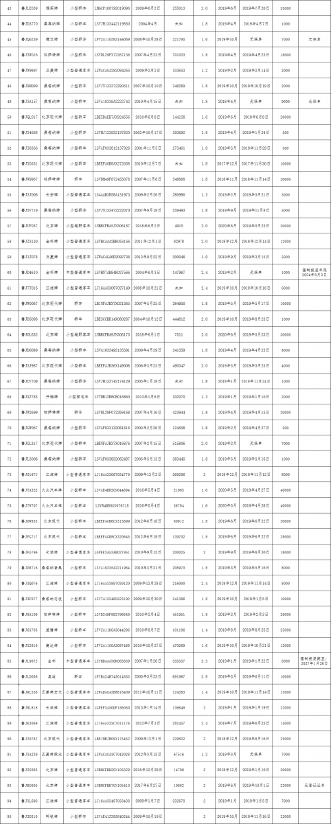 新泰市事業單位及市直企業公務用車一宗,品牌類型有:大眾、現代、長城等;