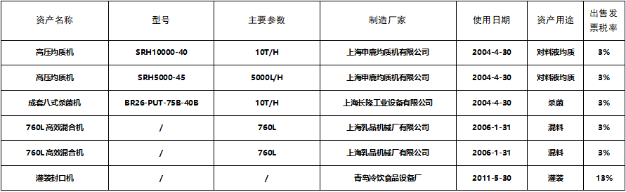 受委托,我公司將于2021年11月24日上午10時在金拍網平臺https://www.jinpaiwang.com.cn以網絡競價的方式公開處置高壓均質機、包裝機、配料罐、雪糕整理機等一批設備,設備未裝箱,完好。