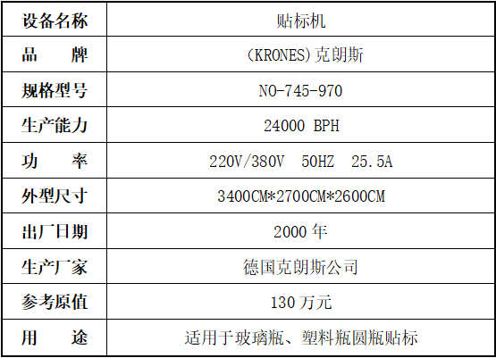 標(biāo)的三:貼標(biāo)機(jī),起拍價(jià) 15萬(wàn)元(不含稅),標(biāo)的設(shè)有保留價(jià),競(jìng)買(mǎi)保證金3萬(wàn)元。已拆機(jī),設(shè)備完好。