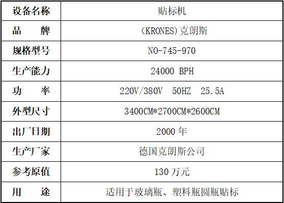標(biāo)的三:貼標(biāo)機,起拍價 135000元(不含稅),標(biāo)的設(shè)有保留價,競買保證金3萬元。已拆機,設(shè)備完好。
