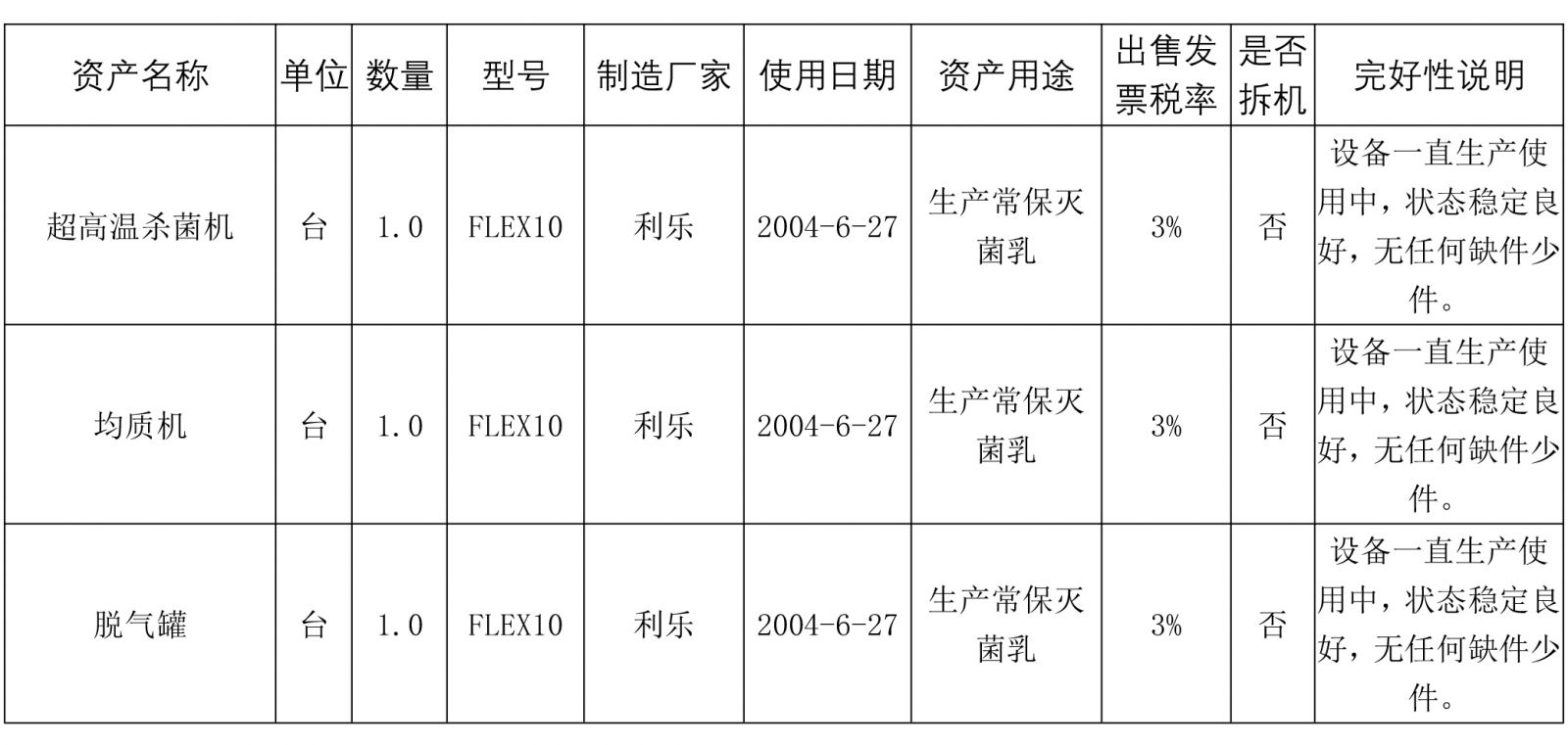 標的一:殺菌機設備一批(具體見附件),標的設有保留價,標的保證金為6萬元,起拍價30萬元(含稅,稅率見詳情表) ;