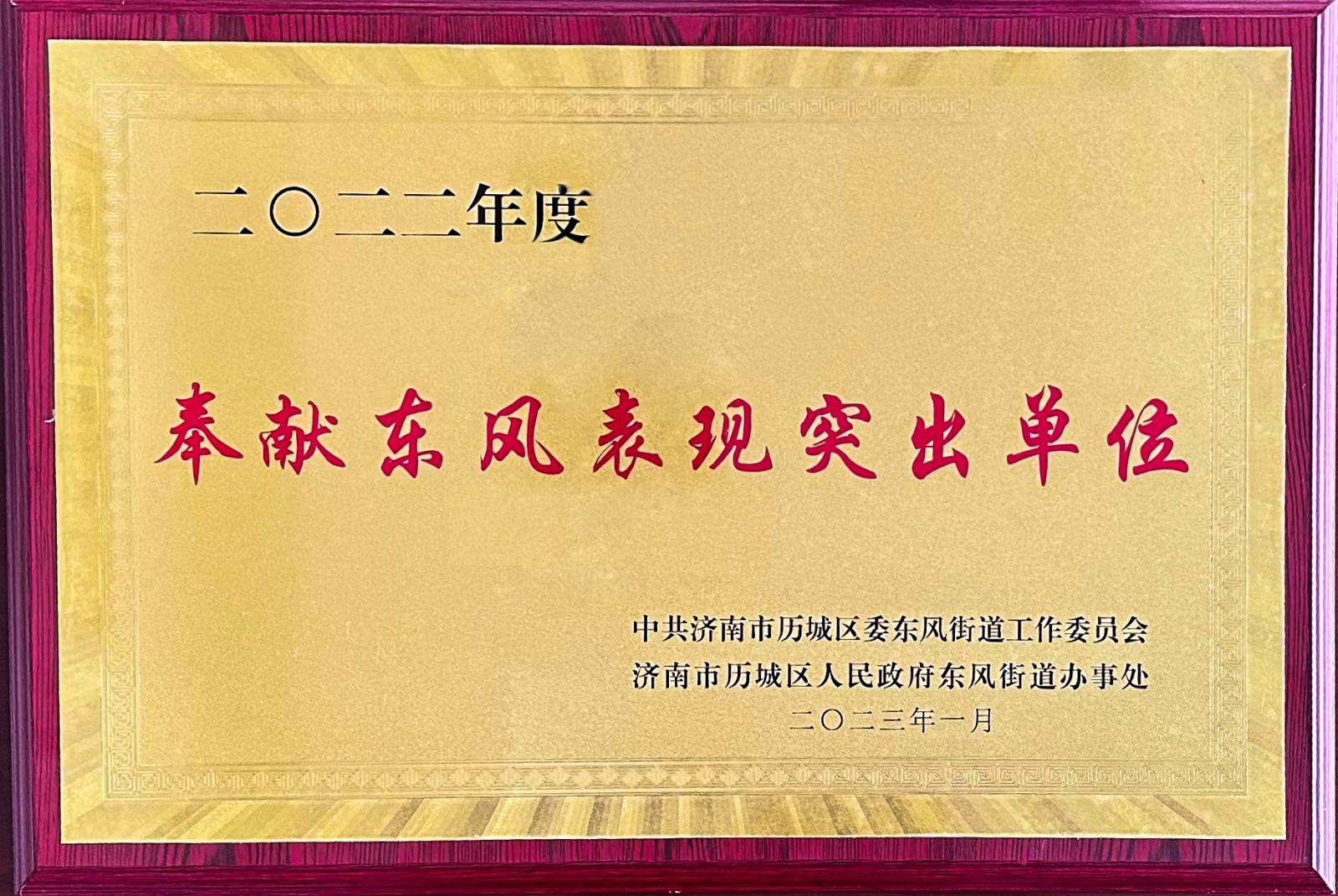 2022年度,金諾國拍集團積極配合中共濟南市歷城區委東風街道工作委員會和濟南市歷城區人民政府東風街道辦事處,在工作中積極作為。此次榮譽的獲得,是對金諾國拍集團2022年度工作的進一步肯定。