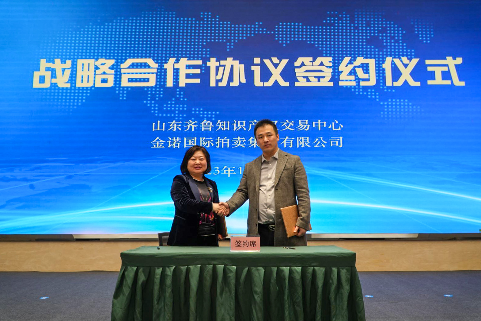 本次拍賣會取得圓滿成功,金諾國際拍賣集團有限公司受到主辦單位的贊譽,雙方達成進一步合作共識,山東齊魯知識產(chǎn)權(quán)交易中心總經(jīng)理桑文新與金諾國際拍賣集團有限公司常務(wù)副總裁劉仰軍現(xiàn)場簽署“戰(zhàn)略合作協(xié)議”。雙方將繼續(xù)加強深度合作,進一步協(xié)同與山東省各類技術(shù)交易主體的聯(lián)動,并根據(jù)專利技術(shù)交易的特點,依托拍賣競價的交易方式,打造專利技術(shù)交易拍賣模式的“山東品牌”,進而為技術(shù)成果的價值提升和加速轉(zhuǎn)化效率貢獻“山東智慧”。