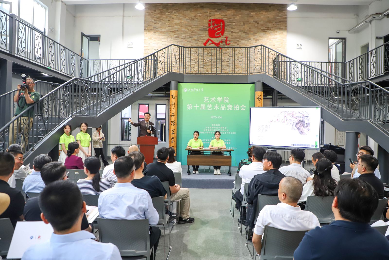 4月27日,山東財經大學藝術學院第十屆藝術品競拍會圓滿舉辦。本次活動由山東財經大學藝術學院主辦;山東省新的社會階層人士聯誼會、濟南市新的社會階層人士聯誼會、沃爾德集團、自貿試驗區濟南片區文化藝術品展示交易中心參與支持;山東省青年美術家協會、金諾國際拍賣集團有限公司、山東財經大學合作發展處(校友工作辦公室)進行指導。山東省新的社會階層人士聯誼會副會長、沃爾德集團總裁、金諾國拍集團董事長商雪梅,濟南市新的社會階層人士聯誼會副會長、金諾國拍集團總裁位琳參加本次活動。金諾國拍集團副總裁、第五屆“中拍杯”全國拍賣師大賽“銀槌”主金坤做示范拍賣。