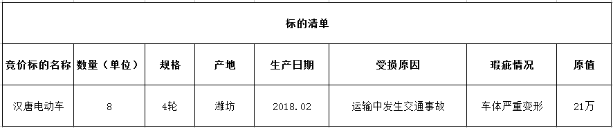 受委托,我公司對(duì)漢唐牌運(yùn)損電動(dòng)車一宗(詳見(jiàn)清單)進(jìn)行招商。